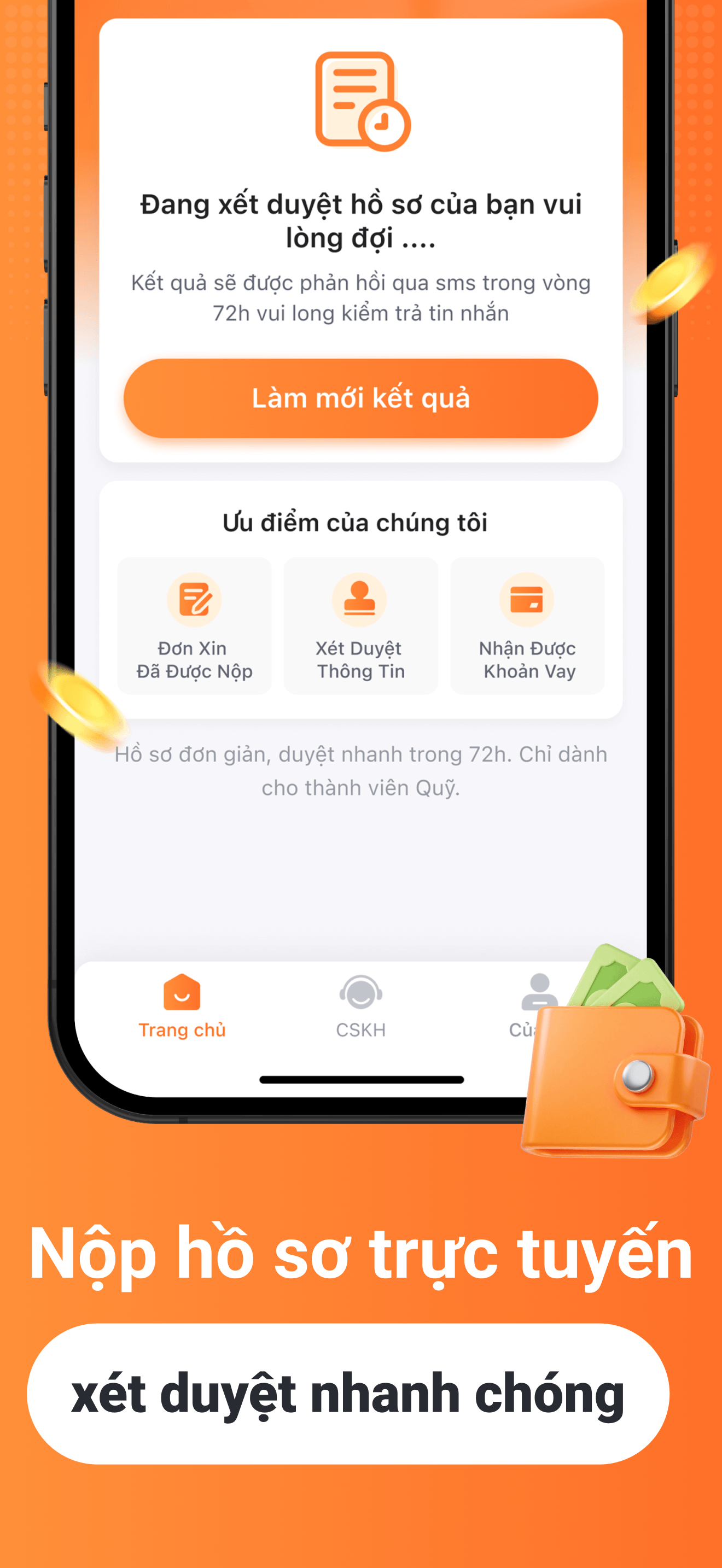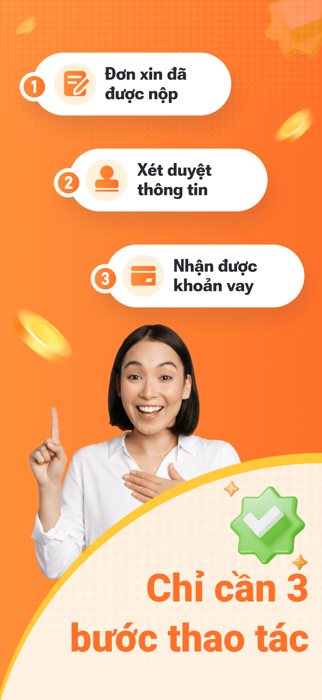 Không cần giấy tờ phức tạp, toàn bộ quá trình thực hiện trực tuyến, sau khi được phê duyệt, tiền sẽ được chuyển thẳng vào tài khoản, giải quyết nhu cầu cấp thiết của bạn.